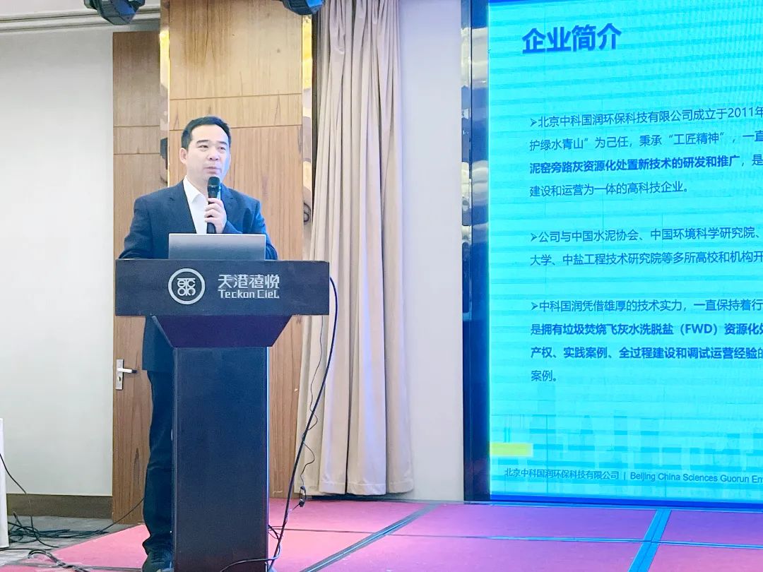 下午,中科國潤董事長李忠鋒做了題為《垃圾焚燒飛灰水洗技術及案例分享》的報告,F(xiàn)WD技術是中科國潤自主研發(fā)的飛灰水洗脫鹽技術,利用三級逆流漂洗技術充分脫除飛灰中的可溶性鹽,提取工業(yè)鉀鹽和鈉鹽進行二次利用,全過程無廢水、廢渣排放,實現(xiàn)了全量資源化。目前FWD技術已經(jīng)成功運用于多個焚燒飛灰資源化處置項目,已建成的飛灰資源化處置項目總規(guī)模56萬噸/年,在建飛灰資源化處置項目總規(guī)模5萬噸/年。
